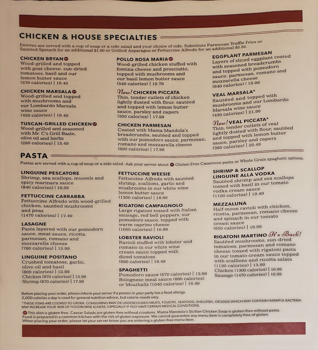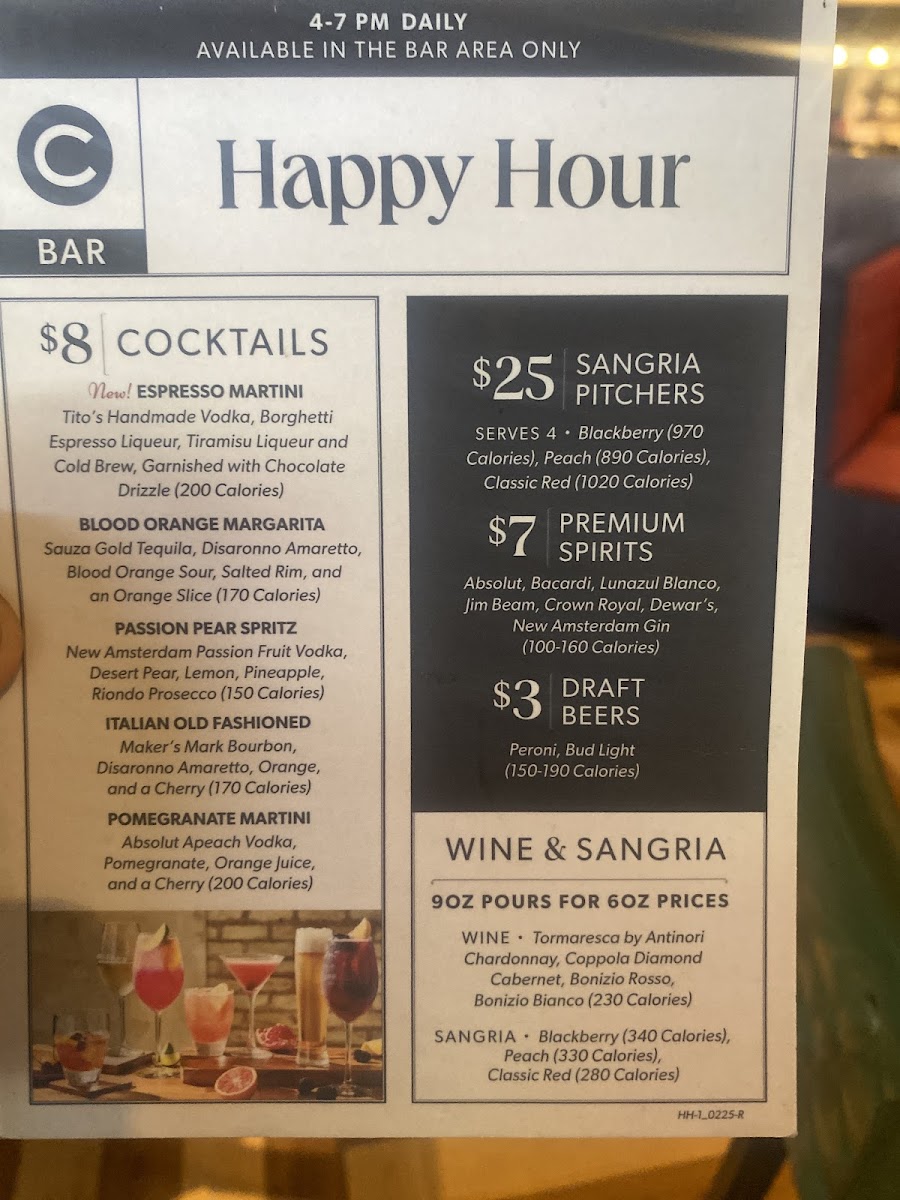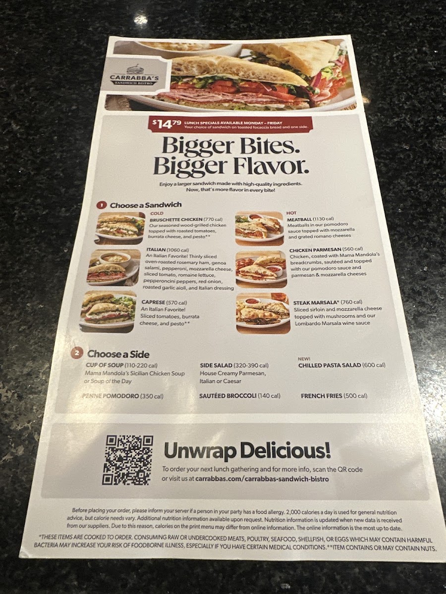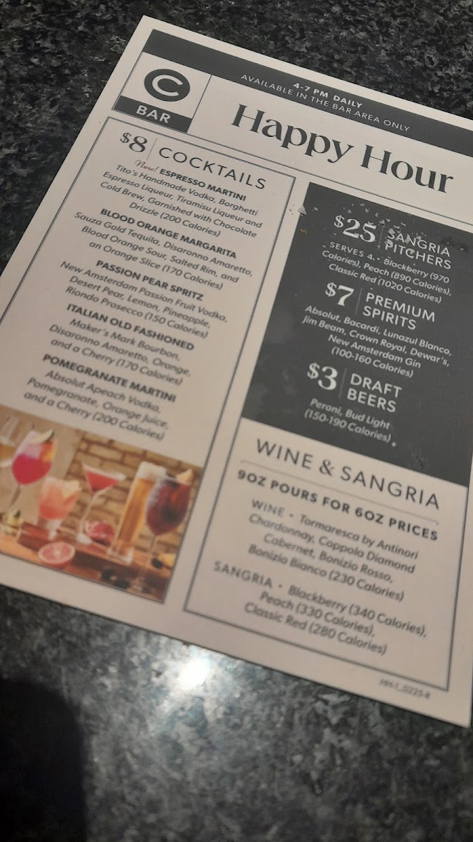 Carrabba’s Italian Grill offers a vibrant menu that beautifully marries Italian tradition with American comfort. Highlighting freshly made pasta dishes, their Filet & Shrimp Pasta Toscana stands out—fettuccine tossed in roasted garlic cream sauce, layered with spinach, mushrooms, and topped with tender filet and wood-grilled shrimp. The Linguine Pescatore impresses with a medley of shrimp, sea scallops, mussels, and a spicy marinara that ignites the palate. Classic options like the hearty Lasagne and rich Fettuccine Carrabba feature layers of pomodoro and meat sauce, with wood-grilled chicken and peas, ensuring both rustic and refined flavors.